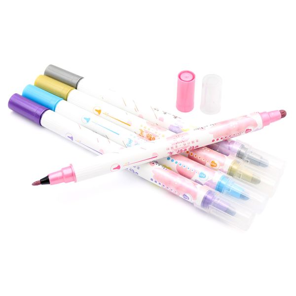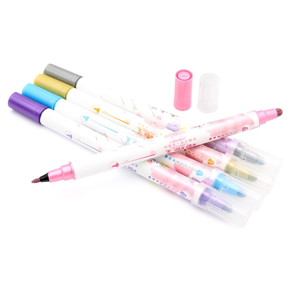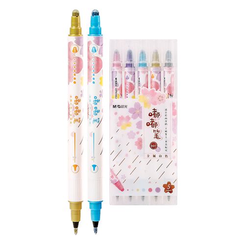 Obojstranný popisovač na vodnej báze. Sada obsahuje 5 ks, čiernu zlatú, modrú, fialovú a ružovú farbu. Kolekcia: Sakura.