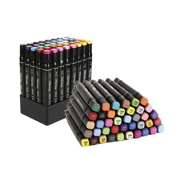 Sada obsahuje šesťdesiat farieb, ktoré sú na alkoholovej báze. Sú odolné voči rozmazaniu alebo aj vyblednutiu.
