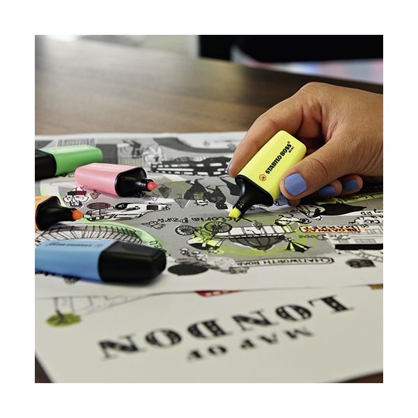 STABILO BOSS MINI. Zvýrazňovače pre všetkých, ktorí si myslia, že mini je roztomilý, zábavný alebo praktický. Klasický STABILO BOSS ORIGINAL v mini formáte: môžete sa spoľahnúť na plný výkon. Zmestí sa do najmenšieho vrecka. Technológia STABILO Anti-Dry-Out: 4 hodiny ochrany proti vysychaniu pri sústredenej práci. Kvalita STABILO v prevedení, pohodlný pri nosení a písaní. Atrament na vodnej báze. 2 šírky čiar 2 + 5 mm.