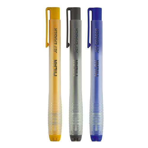 Obdĺžniková guma MILAN 445 z mäkkej syntetickej gumy. Môže byť použitá na gumovanie širokej škály ťahov grafitovej ceruzky zo všetkých druhov papiera. S detským dizajnom v rôznych farbách: biela, ružová, zelená.