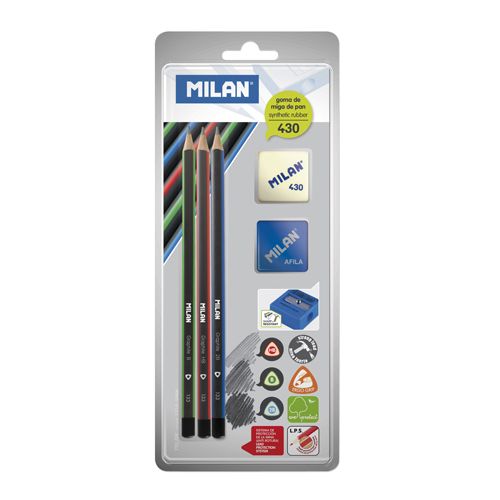 Ceruzka MILAN 3 x trojhranná HB/B/2B + guma + strúhadlo