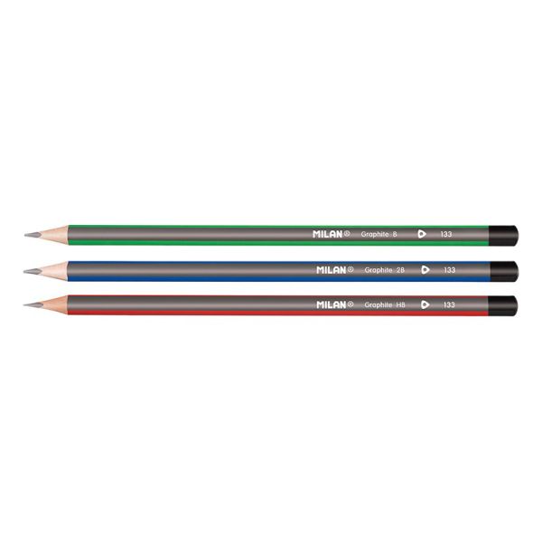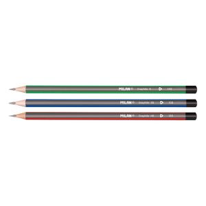 MILAN Art sada ceruziek na kreslenie. sada obsahuje 3 ceruzky s rôznou tvrdosťou (mäkká, stredná a tvrdá) pre rôznu intenzitu čiernej priemer tuhy 4 mm