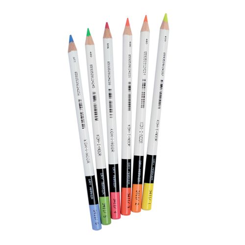 Suché zvýrazňovače textov v podobe okrúhlych ceruziek v 6 farebných odtieňoch.