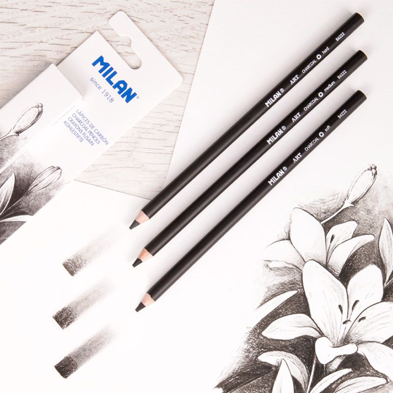 Ceruzka uhlíková MILAN Art (mäkká, stredná a tvrdá) - sada 3ks