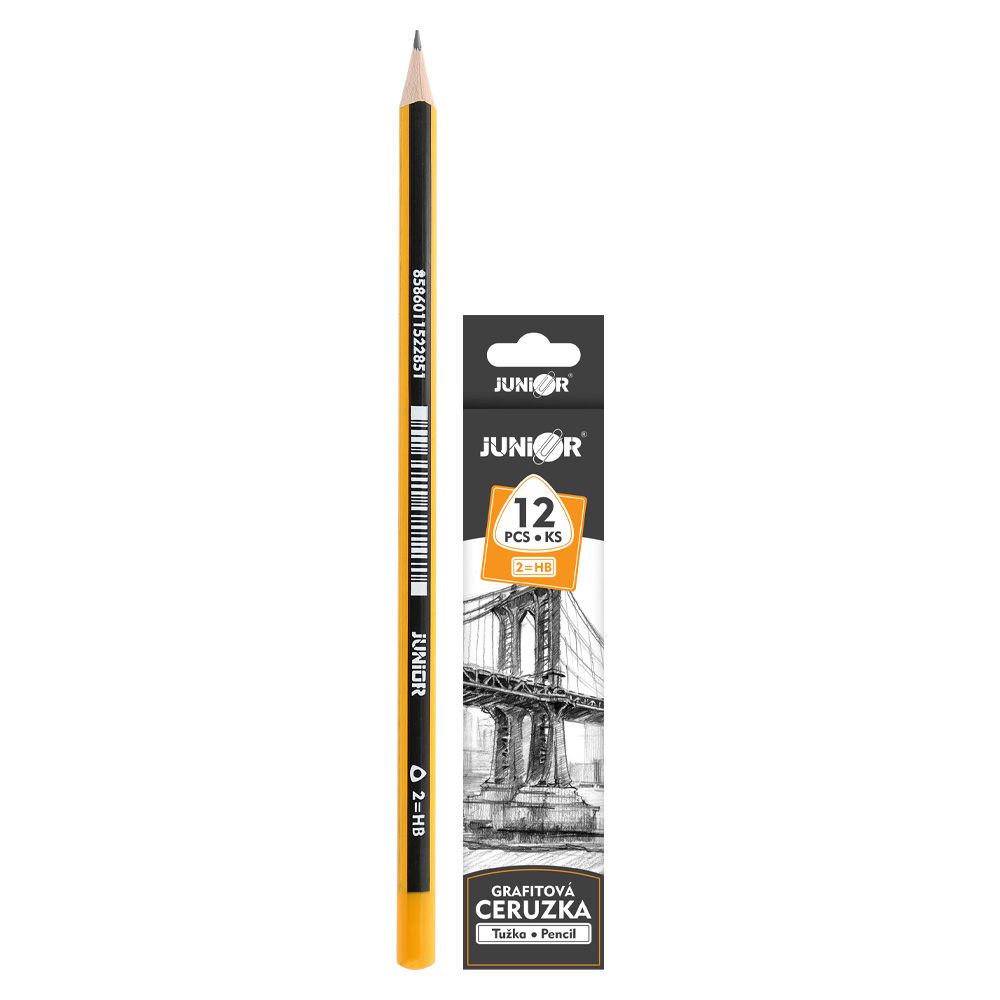 Grafitová ceruzka v tvrdosti 2, telo ceruzky je z dreva štandardnej kvality. baleníe obsahuje 144 ks / cena je za 1 ks.