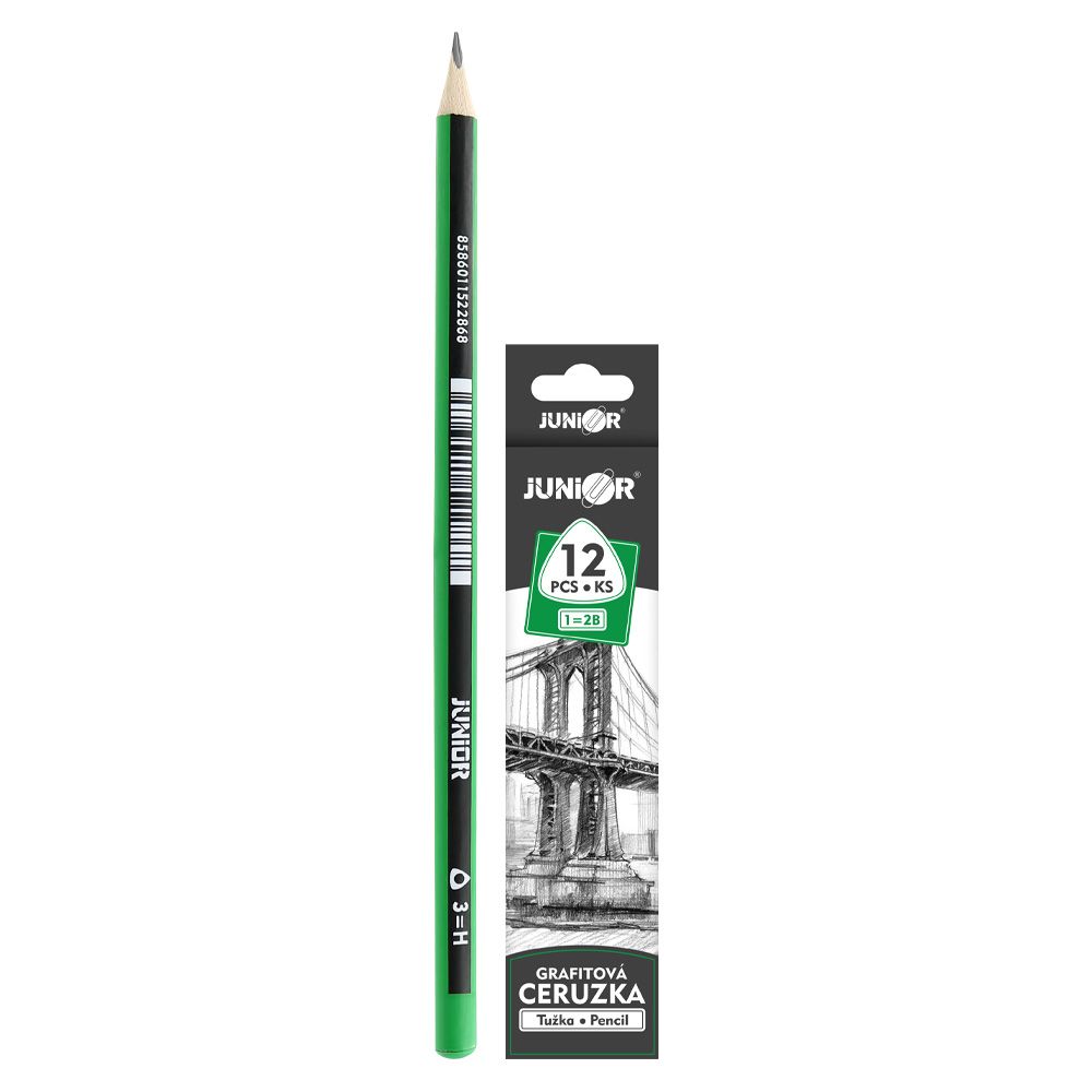 Grafitová ceruzka tvrdosti 3,trojhranná so zastrúhaným hrotom a s dreveným telom štandardnej kvality, dodávaná po 12 ks v balení.