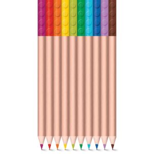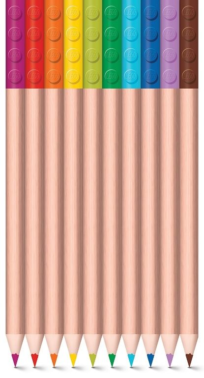 LEGO barevné pastelky, mix různých barev. Balení obsahuje 12 ks dřevěných pastelek a dva barevné klipy ve tvaru LEGO destičky pro uchycení pastelky např. do LEGO pouzdra nebo na přicvaknutí oblíbené minifigurky jako doplňku.