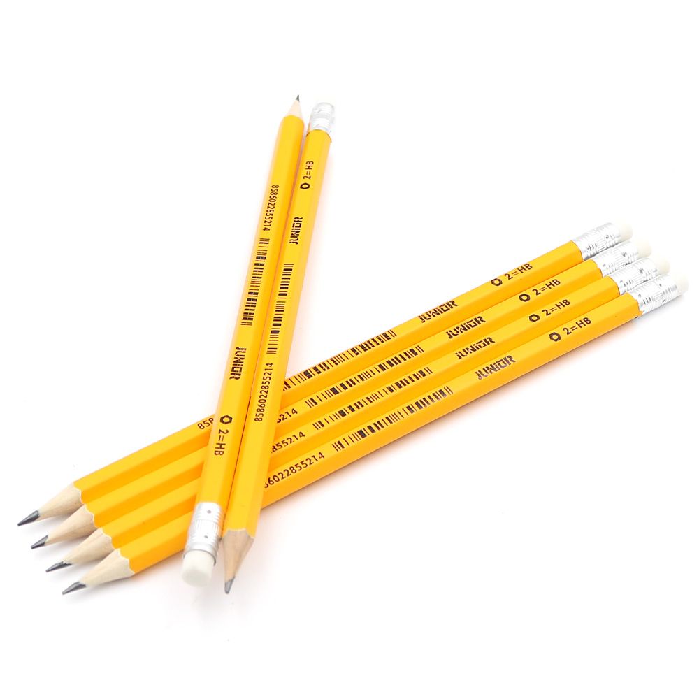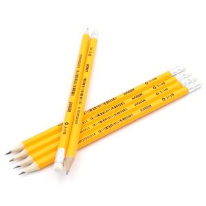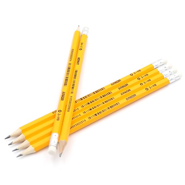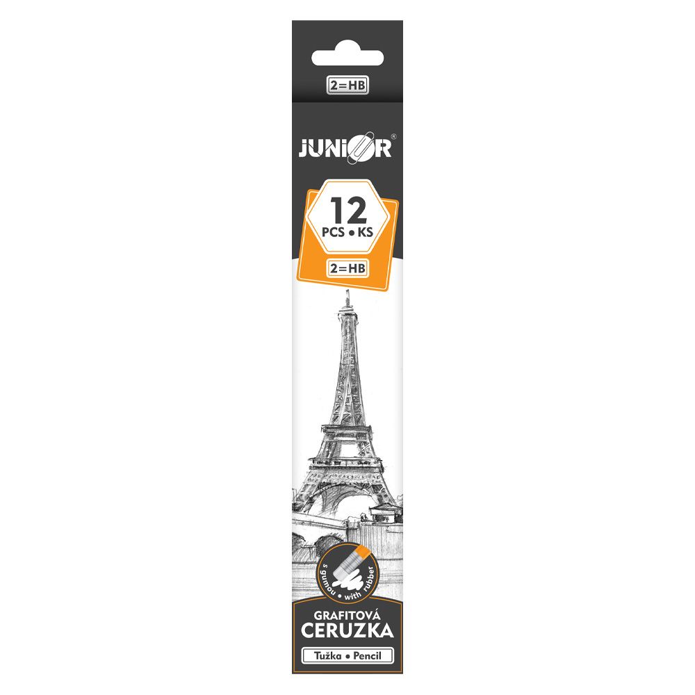 Grafitová ceruzka v tvrdosti HB, telo ceruzky z dreva štandardnej kvality, s gumou na vymazávanie.