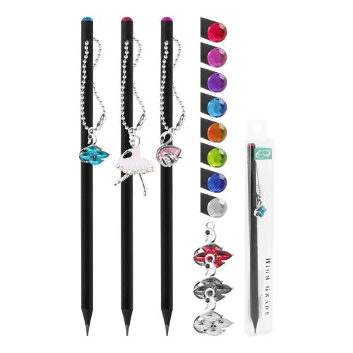 Grafitová drevená ceruzka tej najlepšej kvality s diamantom a príveskom na konci (mix farieb /príveskov), ktoré vyzerajú na ceruzke veľmi krásne.