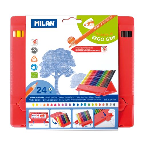 Ergonomicky tvarované pastelky, trojhranné pre lepšie uchopenie - 24 ks balenie. Pastelky sú balené v ľahko prenosnej krabičke odolnej proti nárazu či rozbitiu, ktorá zároveň funguje ako ľahko skladateľný a praktický stojan. Pastelky sa vyznačujú technológou LPS (Lead protection system), ktorý zabraňuje nechcenému zlomeniu tuhy pri nešetrnom zaobchádzaní.