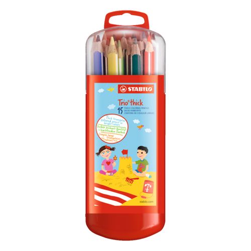 STABILO Trio hrubé pastelky sú ideálne pre malých umelcov, ktorí si radi kreslia. STABILO Trio hrubé majú trojhranný tvar a sú navrhnuté tak, aby sa deťom dobre držali a pomohli naučiť ich správne používať písacie potreby. Typickým znakom je trojhranný tvar, ktorý sa dobre drží a navádza ku správnemu úchopu. Majú intenzívny výdaj farby. Sada 15 ks v závesnom boxe.
