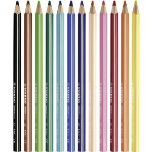 Pastelky trojhranné ekologické hrubé STABILO GREENtrio, 12 ks balenie s rôznymi farbami