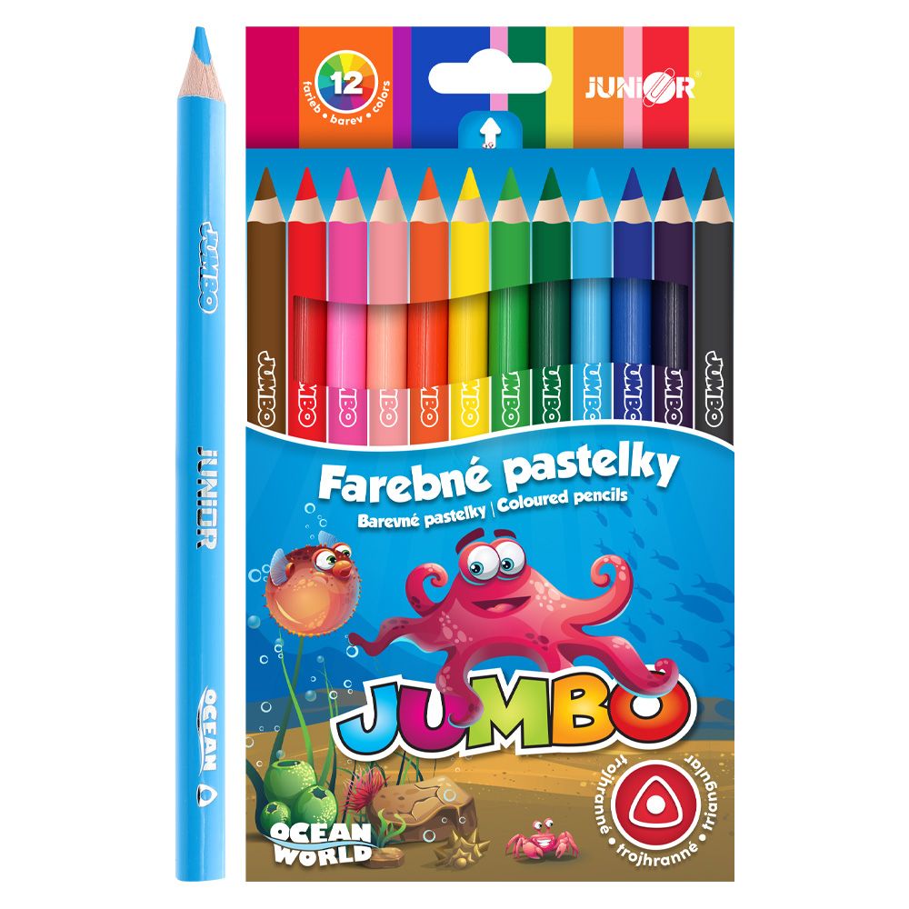 Pastelky JUNIOR Ocean World JUMBO trojhranné - sada 12 ks