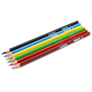 Drevené farebné pastelky sýtych farieb, ktoré vyhovejú rozmanitým potrebám detí. Klasický šesťhranný tvar, určené pre školákov aj predškolákov. Pastelky nemajú na tele žiadne logo výrobcu. Sada obsahuje 12 kusov, balené v papierovej krabičke.