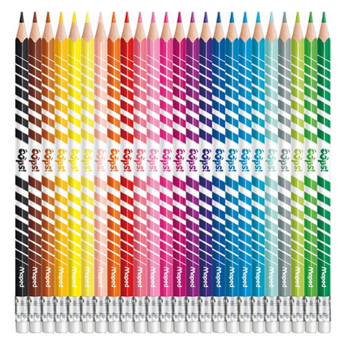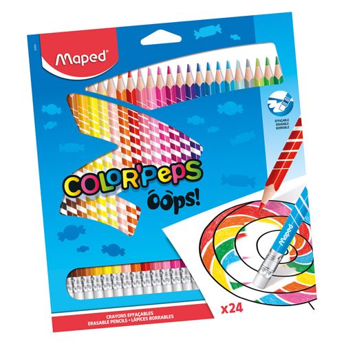 Pastelky trojhranné MAPED "COLOR'PEPS OOPS" s gumou. Výborná krycia schopnosť. Pohodlne sa držia. Tuhy sú odolné proti lámaniu. ľahko sa strúhajú. Trojuholníkový tvar ponúka ľahké uchopenie a je ideálny pre deti, ktoré sú nadšené umením, ktoré chcú kresliť, vyfarbovať, zdobiť a obohatiť svoje kresby. Balenie obsahuje 24 ks.