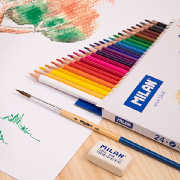 Obdĺžniková guma MILAN 445 z mäkkej syntetickej gumy. Môže byť použitá na gumovanie širokej škály ťahov grafitovej ceruzky zo všetkých druhov papiera. S detským dizajnom v rôznych farbách: biela, ružová, zelená.
