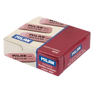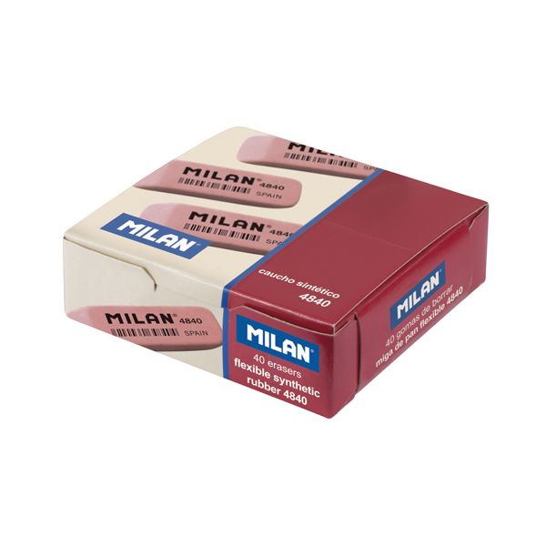 Pružná skosená guma MILAN 4840 je vyrobená zo syntetickej gumy. Môže byť použitá na mazanie grafitových ťahov ceruzkou zo všetkých druhov papiera. Farba: ružová.