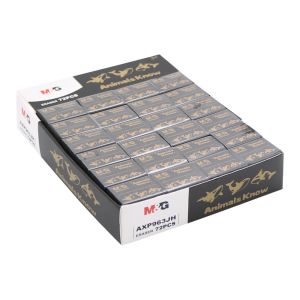 Obdĺžniková guma MILAN 445 z mäkkej syntetickej gumy. Môže byť použitá na gumovanie širokej škály ťahov grafitovej ceruzky zo všetkých druhov papiera. S detským dizajnom v rôznych farbách: biela, ružová, zelená.
