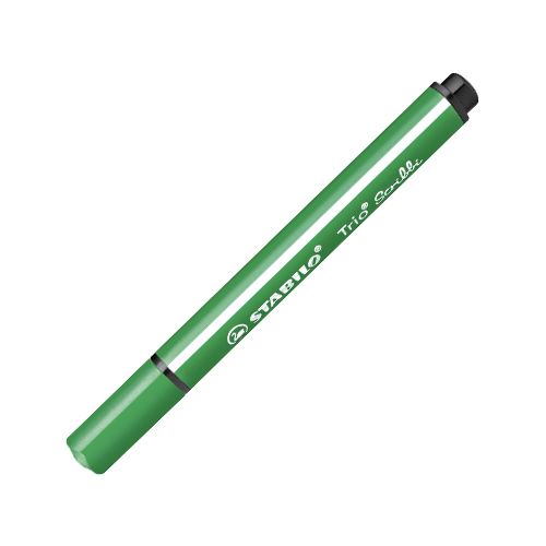 Vďaka odpruženému hrubému hrotu je STABILO Trio Scribbi takmer nezničiteľný. Ergonomický trojhranný dizajn zaisťuje bezpečné držanie v detských rukách pri maľovaní. Intenzívna zelená farba je veľmi dobre umývateľná a dá sa ľahko odstrániť z rúk a oblečenia. Uzáver sa dá ľahko pripevniť na koniec pera.