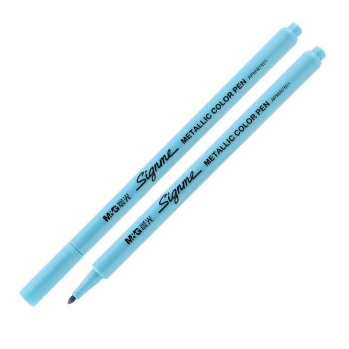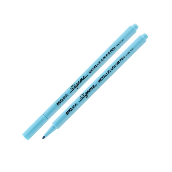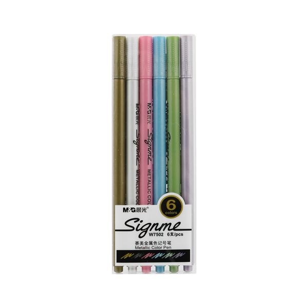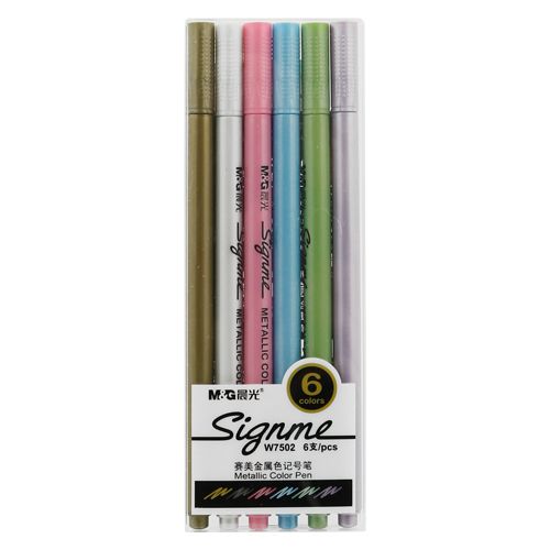 Popisovače v metalických farbách od značky M&G. Sú vhodné na farbenie jemných detailov kvôli ich tenkému hrotu. Hrot je skôr valcového typu a jeho línia je približne 1 mm. Sada šiestich farieb.