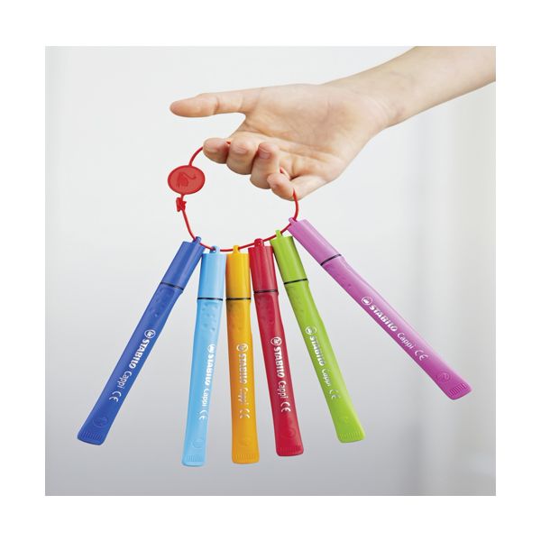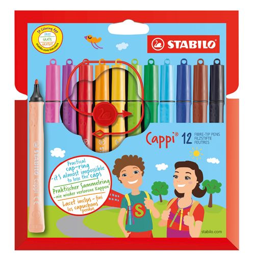 So STABILO Cappi 12 ks balenie sú vrchnáčiky z fixiek ktoré zmizli, minulosťou. Vďaka šikovnému krúžku na vrchnáčik sa dajú vrchnáčiky na fixy jednotlivo navliecť a už sa nestratia. Vďaka svojej ergonomickej zóne uchopenia a špeciálnemu tvaru tuby leží tento fix perfektne v ruke a zároveň sa nemôže skotúlať zo stola. Vďaka svojej 24-hodinovej ochrane pred vyschnutím je ideálny na hodiny tvorivej práce.