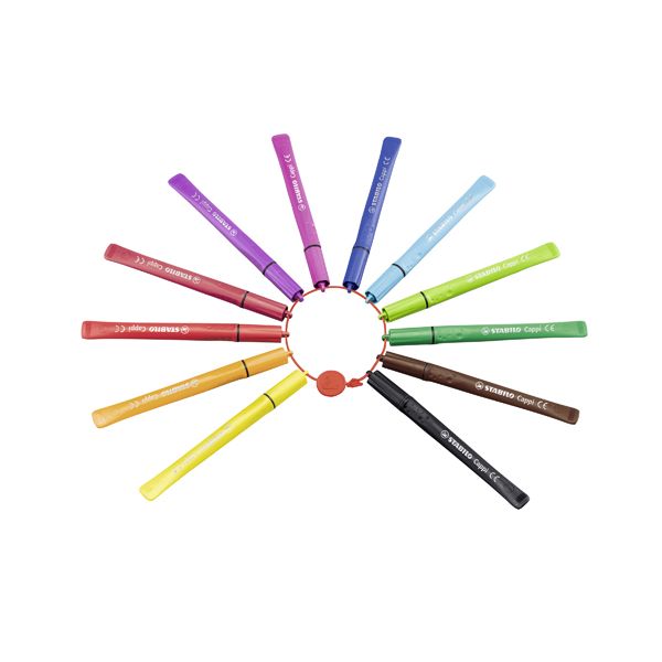 Fixy vláknové s krúžkom na vrchnáčik STABILO Cappi 12 ks