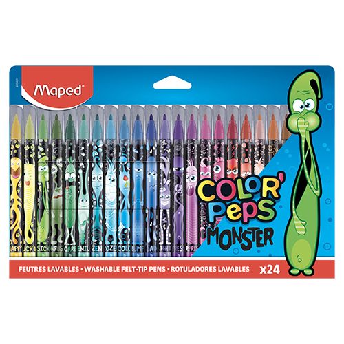Súprava 24 farieb farebných fixiek s motívmi príšeriek. Fixky majú odolný hrot a ľahko vyprateľný a umývateľný atrament.