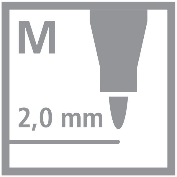 Robustný hrot M so šírkou stopy približne 2 mm je zaistený proti vtlačeniu a viečko je možné pripevniť na koniec pera.