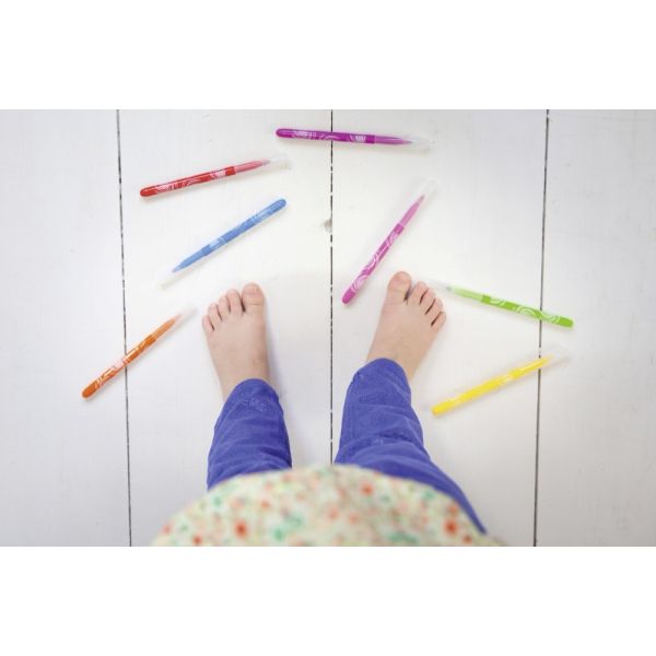 Popisovače vyrobené z PP s ventilačným bezpečenostným uzáverom a vláknovým hrotom odolným voči zatlačeniu. Sú zdravotne nezávadné a vyprateľné. Odolné voči vyschnutiu počas 3 rokov. Šírka stopy: 1,8 mm. Dodávaný v sade 4, 6 alebo 12 farieb.