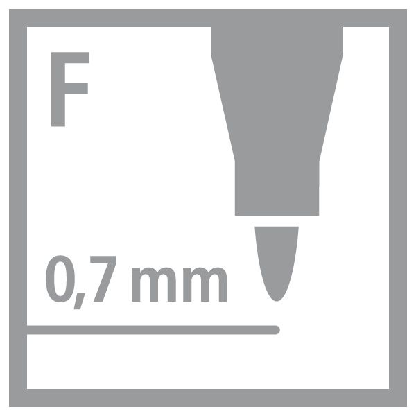 S jemným hrotom F (šírka stopy približne 0,7 mm) vhodné na písanie aj kreslenie.