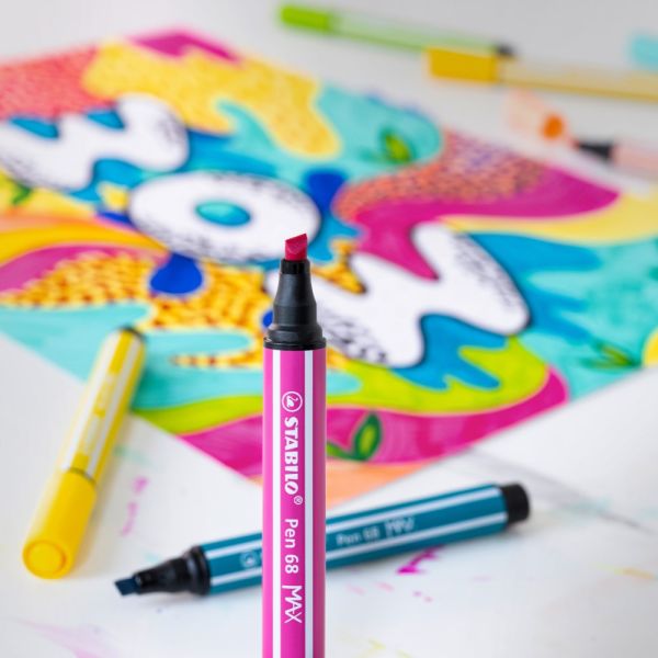 STABILO Pen 68 MAX je k dispozícii v mnohých brilantných farbách, ktoré presvedčia svojou bohatou farebnosťou a vysokou svietivosťou.
