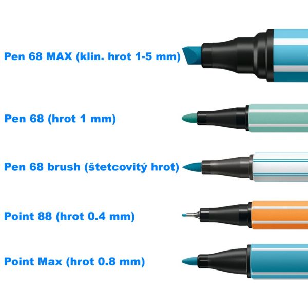 Farby STABILO Pen 68 MAX môžete skvele kombinovať s farbami STABILO point 88, STABILO pointMax, STABILO Pen 68 a STABILO Pen 68 brush.