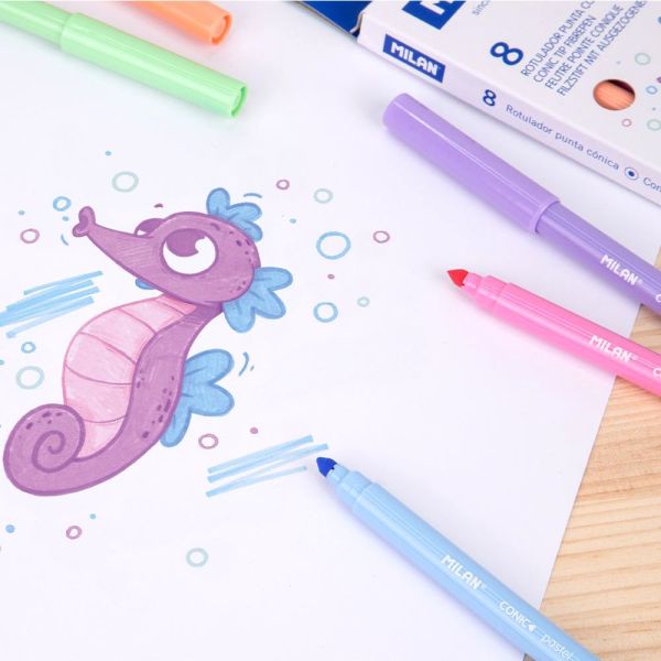 Fixy MILAN guľaté PASTEL - sada 8 ks