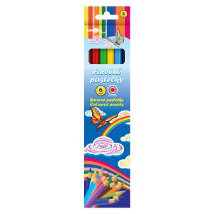Drevené farebné pastelky sýtych farieb, ktoré vyhovejú rozmanitým potrebám detí. Klasický šesťhranný tvar, určené pre školákov aj predškolákov. Pastelky nemajú na tele žiadne logo výrobcu. Sada obsahuje 12 kusov, balené v papierovej krabičke.