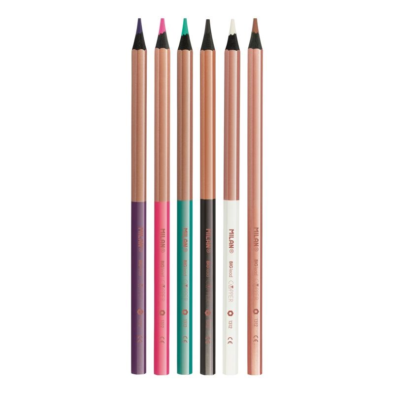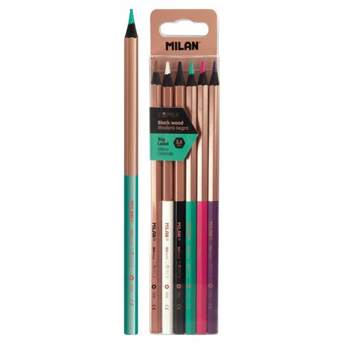 Šesťhranné farebné pastelky so silnou tuhou 3,5 mm. Edícia Copper – medený dizajnový povrch v kombinácii s výraznými farbami. Pastelky s ochranným systémom LPS (lead protection system), ktorý zvyšuje odolnosť proti lámaniu. Drevo pochádza z trvalo udržateľných lesov. V 6 farbách: medená, biela, čierna, zelená, ružová a fialová. Sú skvelé na kreslenie na tmavý papier.