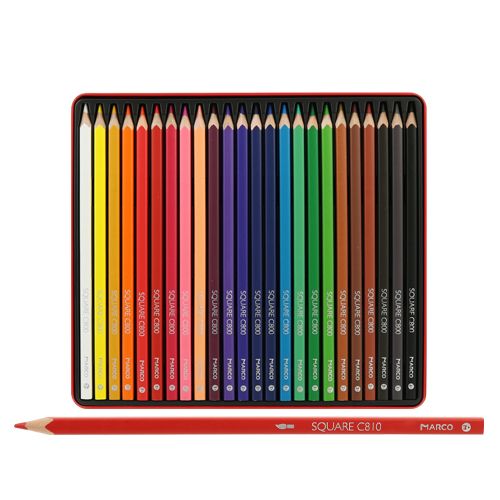 Umelecké pastelky MARCO sú určené pre profesionálov aj amatérov, ktoré presvedčia ich vysokou kvalitou. Štvorhranné farebné pastelky v praktickom plechovom boxe. Sada obsahuje 24 farebných pasteliek. Krásne sýte farby z kvalitného dreva, ktoré zaručuje ľahké strúhanie. Dĺžka pastelky 175 mm, hrúbka ceruzy 6,9 mm, hrúbka tuhy 3 mm/HB. Odolnosť proti lámaniu, maximálna svetlostálosť a optimálne nanášanie farieb.