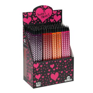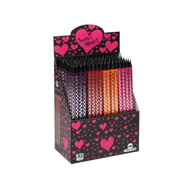 Grafitová ceruzka HB: vysoko kvalitné čierne drevo a kvalitný grafit hladké a elegantné písanie zaujímavý okrúhly dizajn 4 farby tela, motív so srdiečkami hrúbka tuhy: 2,2 mm