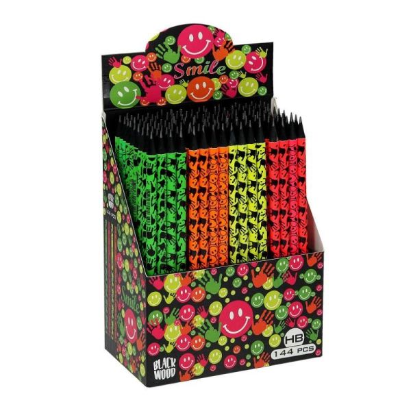 Grafitová ceruzka HB: vysoko kvalitné čierne drevo okrúhly tvar pre hladké a elegantné písanie úsmevné motívy vo farbách FLUO stredná tvrdosť tuhy: HB hrúbka tuhy: 2,2 mm prvky na tele s…