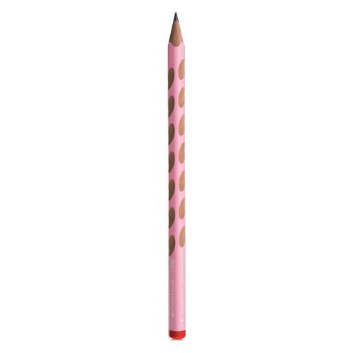 Ergonomická trojhranná grafitová ceruzka, navrhnutá špeciálne vo variante pre pravákov. Vynikajúce protisklzové úchopové zóny. Na ceruzke je miesto pre meno. Vyrobená z dreva, z trvalo udržateľného lesného hospodárstva. Tvrdosť: HB / 3,15 mm. Dizajn: farba pastelovo ružová.