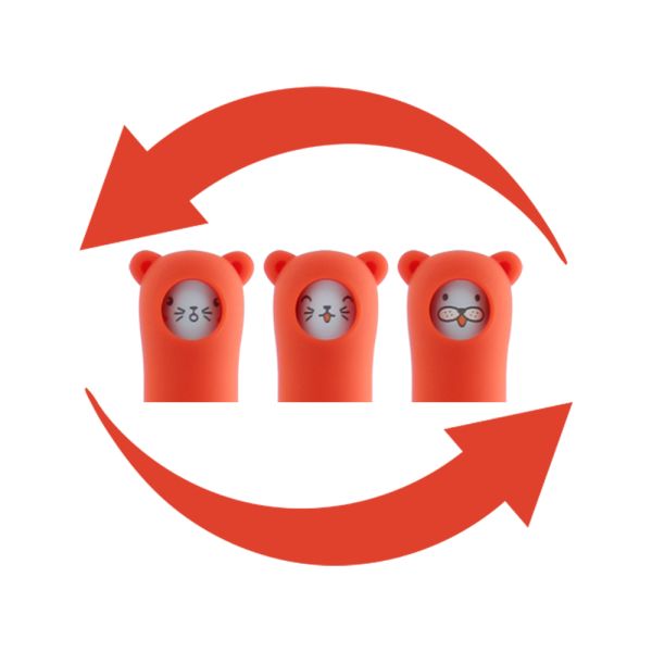 Blister štyroch gumovacích rollerov od značky M&G. Farba atramentu je modrá, stopa hrotu je 0,5 mm. Guma sa nachádza na tele pera. Po vložení tela do vrchnáku môžete zatočiť a uvidíte, ako sa vám na vrchnáku menia tváričky.
