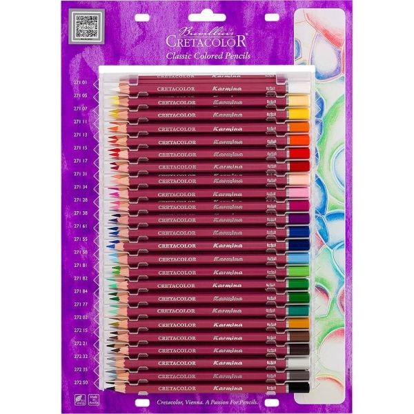 Šesťhranné umelecké farebné ceruzky KARMINA sa vyznačujú trvalou kvalitou a mäkkou stopou, s bohatým pigmentom, ktorá vytvára odvážne, živé ťahy. Sú ideálne pre rôzne techniky kreslenia, napr. vrstvenie, šrafovanie, frotáž, miešanie a žilkovanie. V ponuke 24 farebných odtienov.