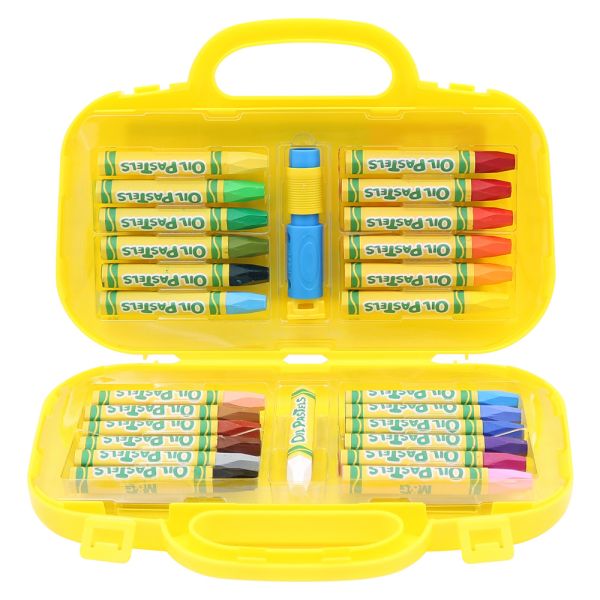 Sada voskových farbičiek v praktickom, žltom kufríku.