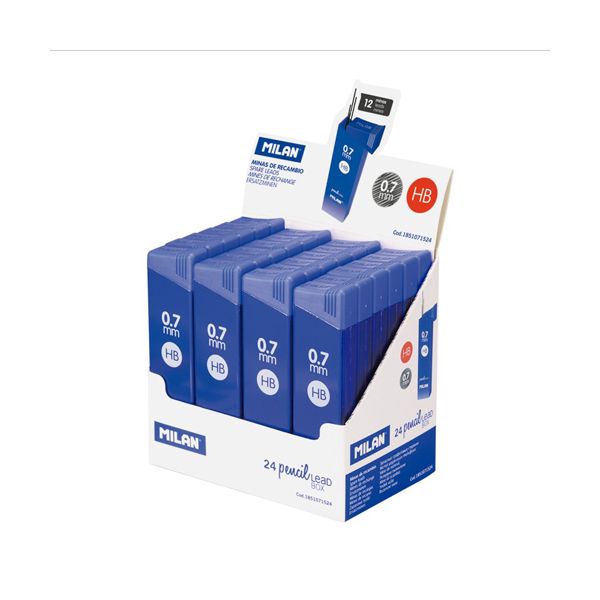 Náplň MILAN do automatickej ceruzky s priemerom 0,7 mm, tvrdosti HB. Dodávané v praktickom puzdre s výsuvným otváraním, v ktorom je možné tuhy bezpečne uchovávať. Balenie obsahuje 12 kusov.