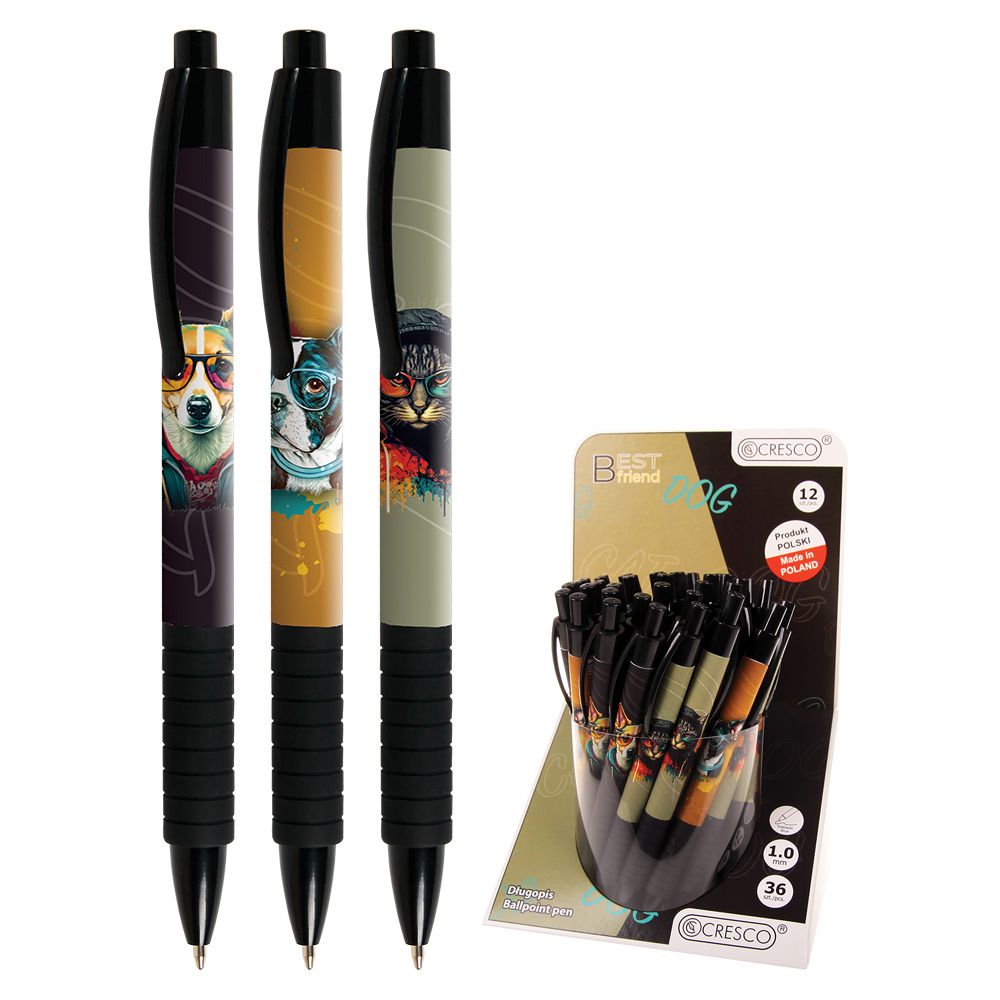 Guľôčkové pero s plastovým telom a ergonomicky tvarovaným gumovým úchopom. Pero má príjemné vyhotovenie s pogumovaným povrchom. Náplň modrá, šírka hrotu 1.00 mm. Dizajn: My Best Friend.
