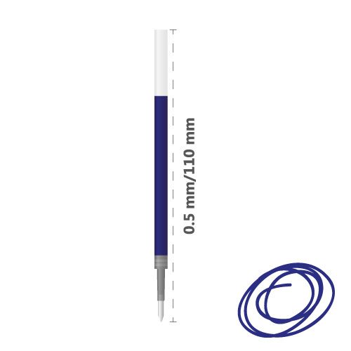 Gélová náplň do pera, modrá farba, dĺžka 110 mm, priemer guľôčky 0,5 mm.
