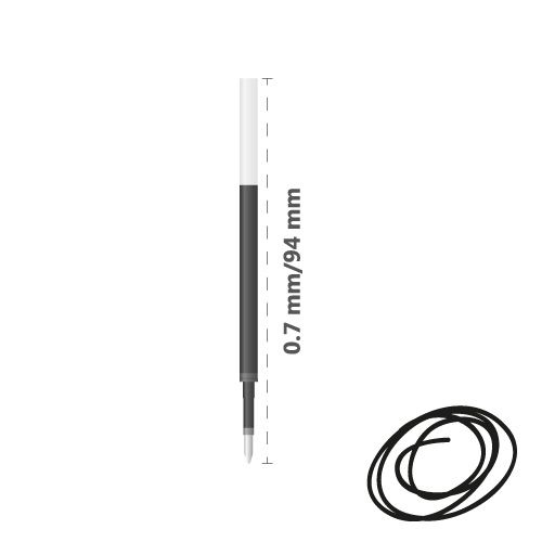 Náplň do gélového pera, priemer guľôčky 0,5 mm, farba čierna. Dĺžka: 104 mm.