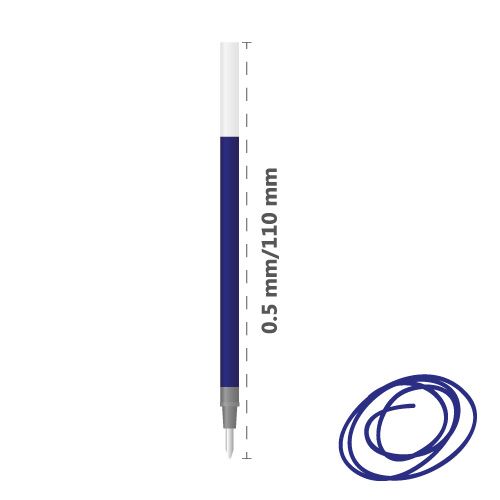 Náplň do gélového pera, priemer guľôčky 0,5 mm, farba modrá. Dĺžka: 104 mm.