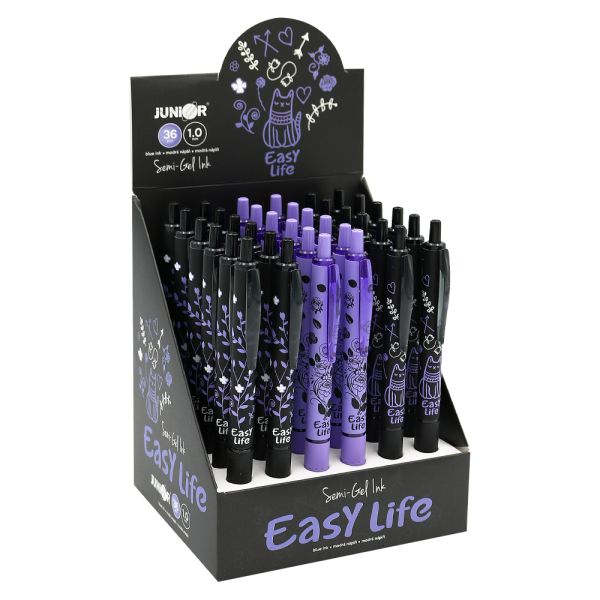 Guľôčkové pero s plastovým telom a ergonomicky tvarovaným gumovým úchopom. Priemer hrotu je 0.7 mm. Dodávané vo farbách: modrá, žltá, červená, biela. Náplň modrá. Jednorazová náplň.