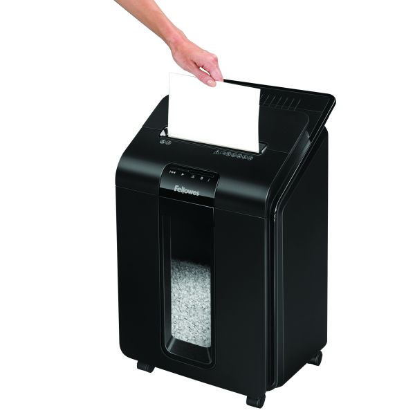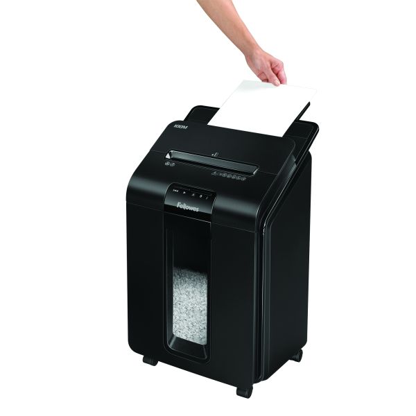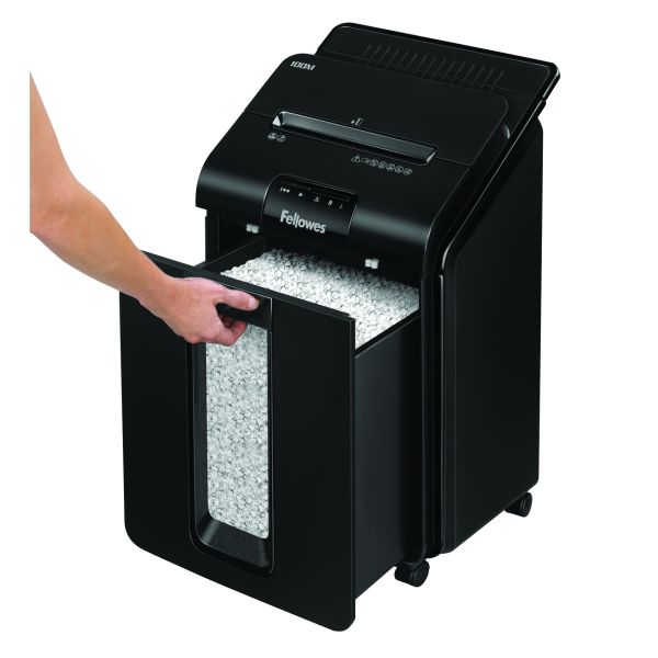 Vstupný model z radu automatických skartovačov značky Fellowes. Ľan nalož, zapni a bež. Automatický skartovací stroj Vám šetrí čas strávený vkladaním skartovaných papierov. Zariadenie je schopné na jeden pracovný cyklus pri automatickom podávaní skartovať až 100 listov 70g papiera v krížovom mikroreze hrdzu 4×10 mm. Skartovač je tiež vybavený vstupnou štrbinou na ručné podanie až 10 listov papiera. Objem odpadového koša 23 litrov. Rezací mechanizmus spracuje pri manuálnom podávaní zošívačkou zošité papiere a kreditné karty. Jednoduchá manipulácia so strojom vďaka pojazdovým kolesám.