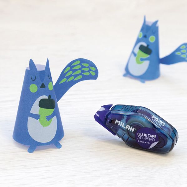 Lepiaci strojček MILAN s lepiacou páskou. Všestranný a ľahko použiteľný. Precízna aplikácia a rýchle sušenie. Ergonomický dizajn s posuvným kohútikom na ochranu hrotu. Modrá priesvitná farba s detailmi v modrej, červenej alebo zelenej farbe. Šírka 8,4 mm x dĺžka 5 m